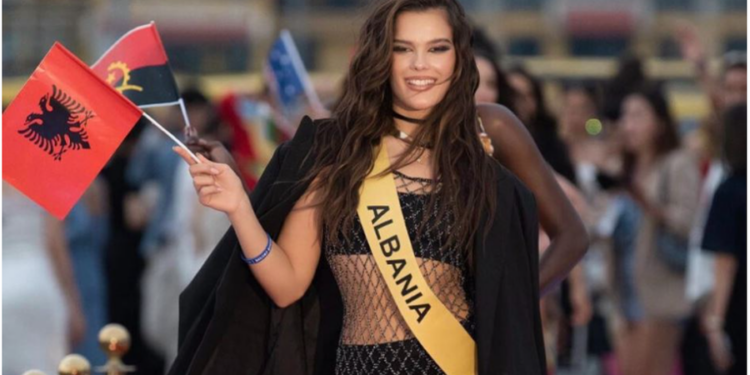 E veshur me ngjyrat kuq e zi, ajo vodhi zemrat e teleshikuesve në spektaklin gjigant të bukurisë, duke u përzgjedhur si 1 ndër 25 fytyrat më të bukura në botë, nga 100 vende pjesëmarrëse në këtë kompeticion.