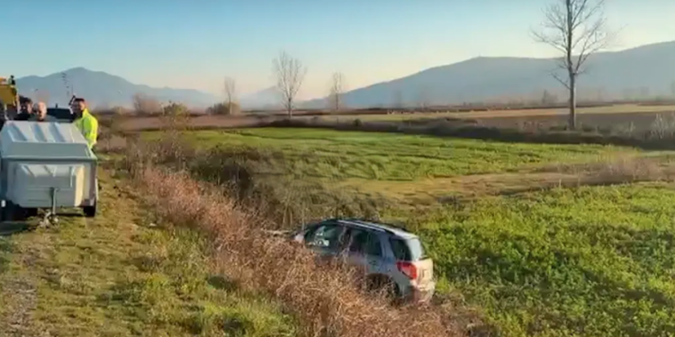 Ndërkohë siç shihet nga pamjet e siguruara nga Report Tv një nga makinat ka dalë nga rruga dhe ka përfunduar në një parcelë pranë saj.