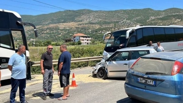 Mësohet se në aksident janë përfshirë dy autobusë dhe një makinë, e si pasojë janë plagosur dy persona.