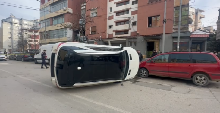 Një aksident është regjistruar mesditën e sotme në qytetin e Korçës. Një automjet tip “Benz” ka përplasur një mjet të parkuar dhe më pas është përmbysur në mes të rrugës.