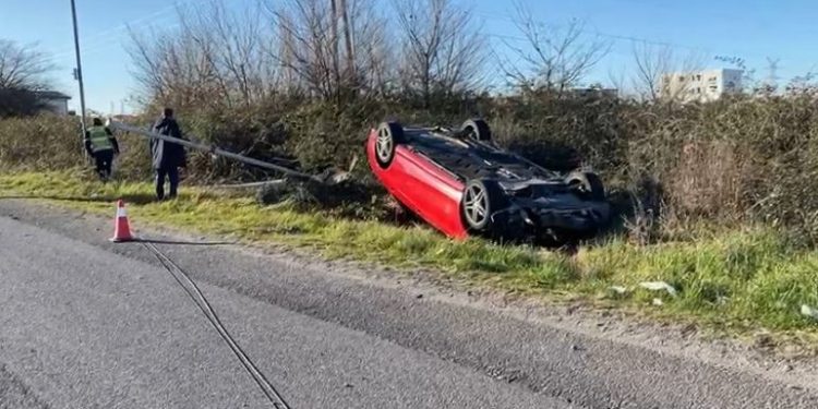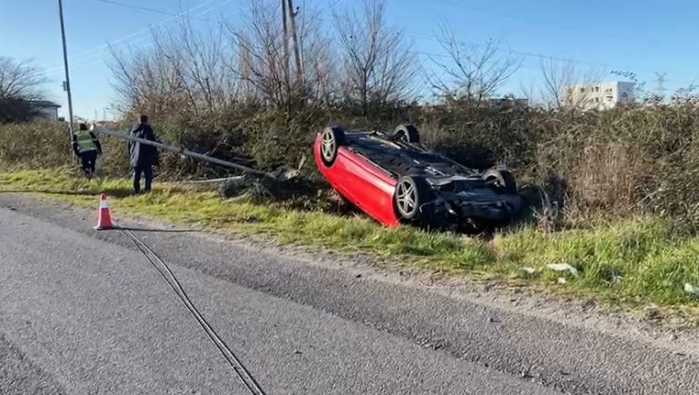 Një automjet benz me të cilin udhëtonte një femër ka humbur kontrollin dhe është përplasur me shtyllat në anë të rrugës, duke u përmbysur.