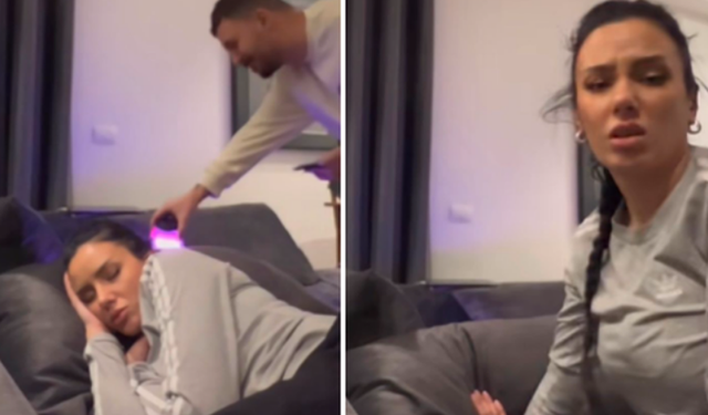 Në videon në fjalë Bora Zemani shihet duke fjetur në rehatinë e saj, ndërsa aktori i njohur e zgjon duke i vendosur një zhurmë të frikshme afër kokës.