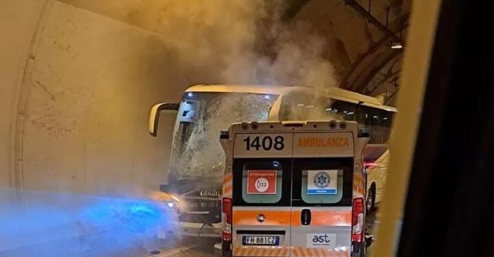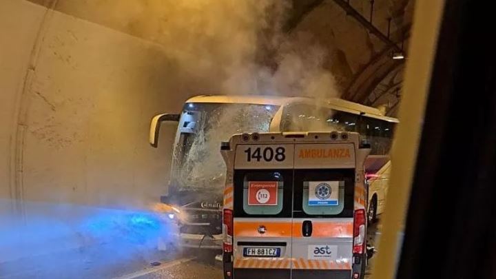 Katër persona që ndodheshin në një ambulancë kanë humbur jetën sot pasi mjeti goditi një autobus fëmijësh dhe mori flakë në një tunel pranë qytetit të Urbinos, në rajonin italian të Marche.