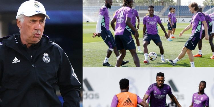 Dita e parë e punës për Real Madridin pas barazimit ndaj Manchester Cityt dhe shumë lëvizje nëpër qytetin sportiv të Valdebebas. Carlo Ancelotti dhe skuadra e tij, në fushë me gjashtë të dëmtuar dhe një “afrim të ri” në minutën e fundit që ishte një dhuratë e mrekullueshme.