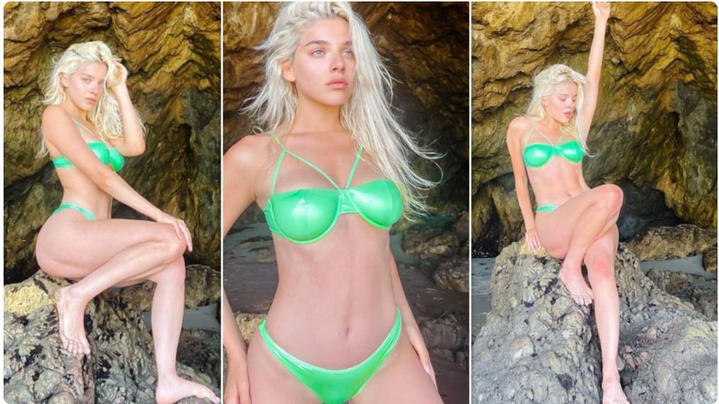 Biondja zgjodhi një palë bikini ngjyrë të gjelbër si dhe u shfaq tërësisht pa makijazh.