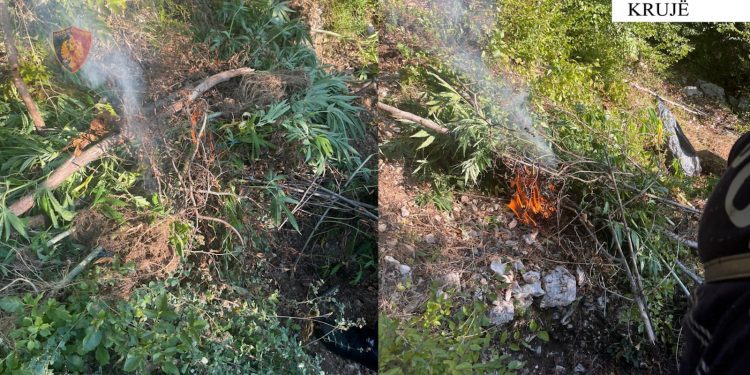 Si rezultat i kontrolleve të ushtruara në kuadër të fazës së 34-t të megaoperacionit policor antikanabis të koduar “Territor i pastër”, në malësinë e Krujës, u gjetën të kultivuara 910 bimë të dyshuara narkotike cannabis sativa, të cilat u asgjësuan me anë të djegies.