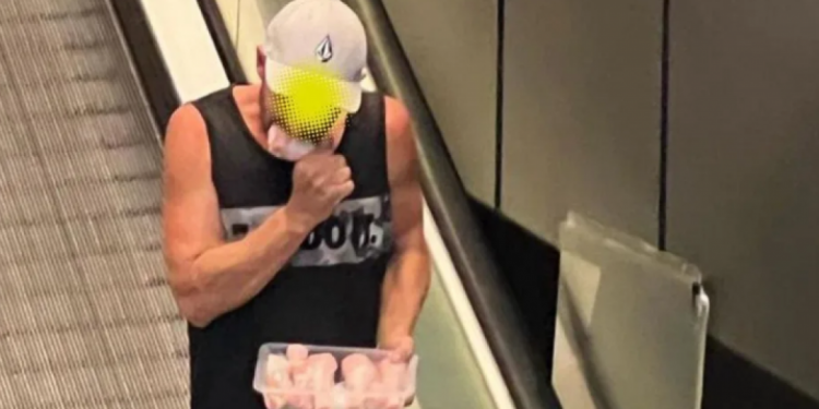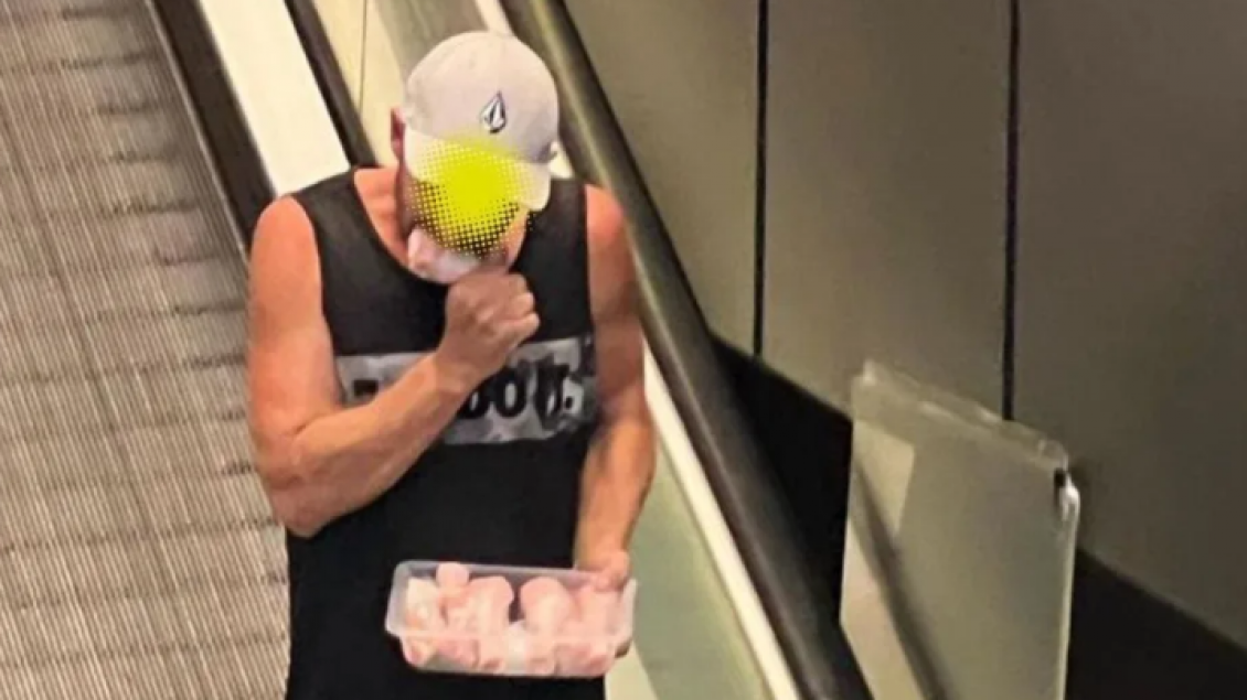 Një burrë u kap nga kamerat duke ngrënë pulë të papjekur në një qendër tregtare në Adelaide të Australisë.