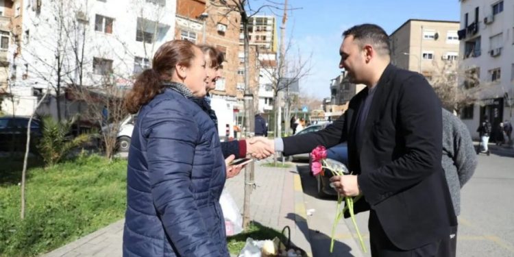 Kandidati i PD-së për Bashkinë e Tiranës, Belind Këlliçi, i ka dhuruar lule shitëseve ambulante në rrugët e kryeqytetit.