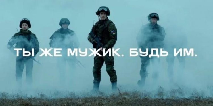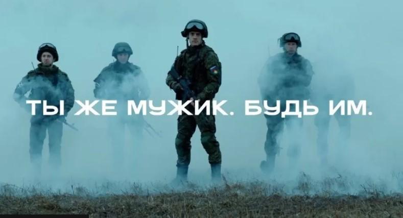 “Ti je burrë. Bëhu burrë!,”- thotë një reklamë e Ministrisë së Mbrojtjes që u bën thirrje rusëve të bashkohen me ushtrinë.
