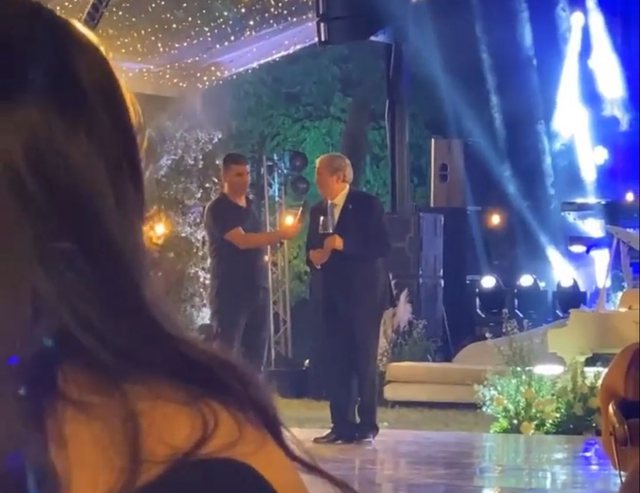 Në një video të postuar në tiktok, Berisha shihet i ulur në tavolinë, i rrethuar nga të afërm, teksa bashkëshortja e tij Liri Berisha ndodhet në pistën e kërcimit, ashtu si edhe djali Shkëlzeni me bashkëshorten Armina Mevlani.