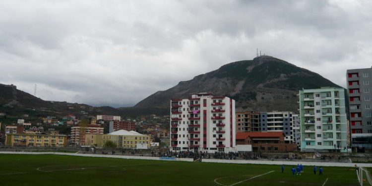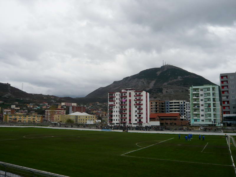 Një grup tifozësh të Besëlidhjes kanë vendosur në tribunën përballë një parullë ku shkruhej “Thuaj JO Shembjes”. Ka kohë që është deklaruar se stadiumi i qytetet të Lezhës do të shembet. Kjo tashmë ka nisur pasi aneksi i stadiumit është prishur.