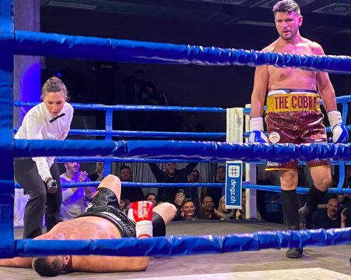 Ai arriti të mposhtë boksierin gjerman në raundin e dytë, duke siguruar kështu edhe titullin WBF Intercontinental në kategorinë e peshave të rënda.