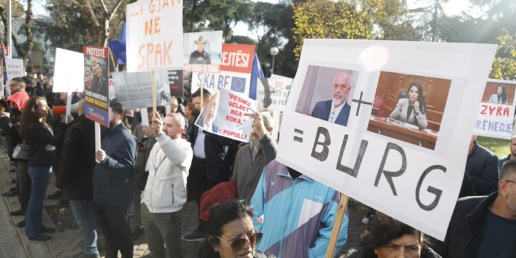 “Burg, burg. Duam drejtësi”, dëgjohet teksa brohoret turma e protestuesve.