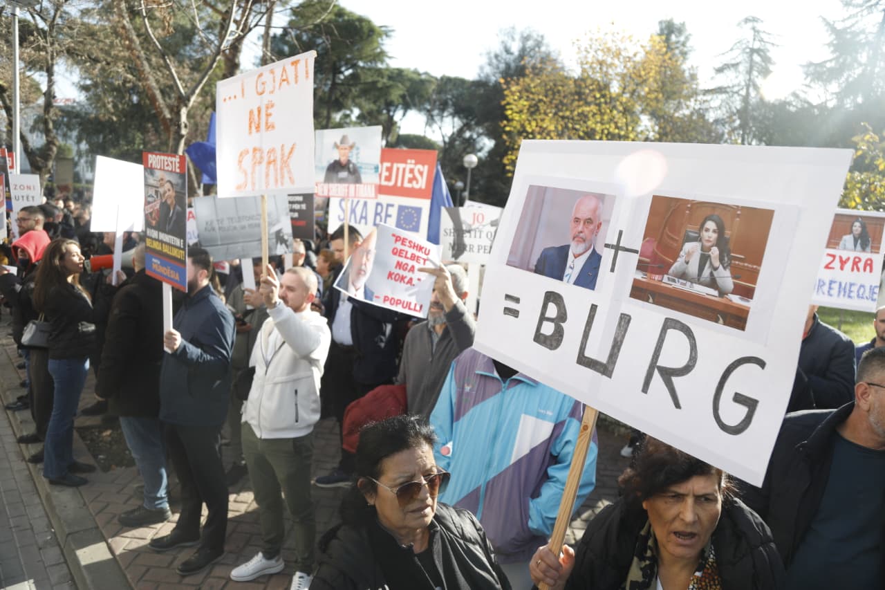 “Dorëzoni Belindën”, “Dil nga zyra dhe jep dorëheqjen”, “Pa drejtësi nuk ka BE”, “Jo shtetit që të merr peng” janë disa nga pankartat që protestuesit e partisë Mundësia mbajnë para kryesisë së Kuvendit, teksa po protestojnë kundër të pandehurës Belinda Balluku.