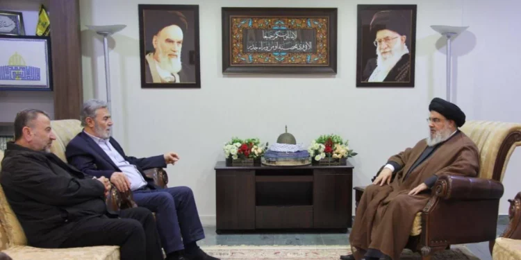 Kreu i organizatës ushtarake të Hezbollahut të Libanit u takua me shefin e Xhihadit Islamik Palestinez, Ziyad al-Nakala dhe nënkryetarin e Hamasit, Saleh al-Aruri, sipas mediave libaneze.