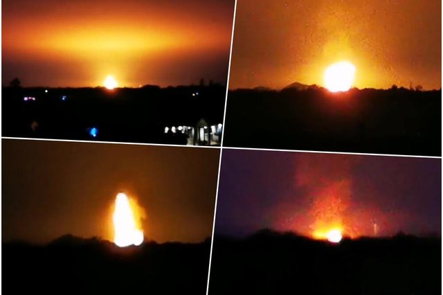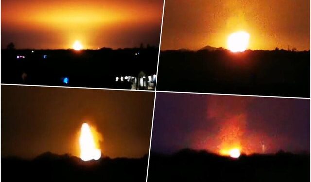 Pamjet që qarkullojnë në mediat sociale tregojnë një top të madh zjarri që ngrihet në qiellin e natës.