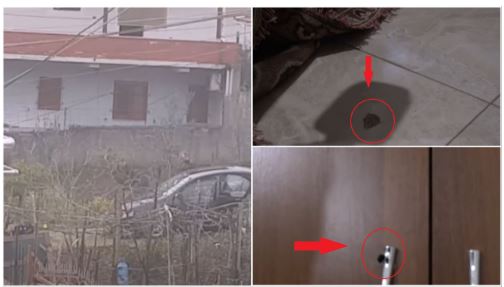 Në pamjet e publikuara nga emisioni “Uniko” shihen shenjat e plumbave të qëlluara nga 40-vjeçari me kallash.