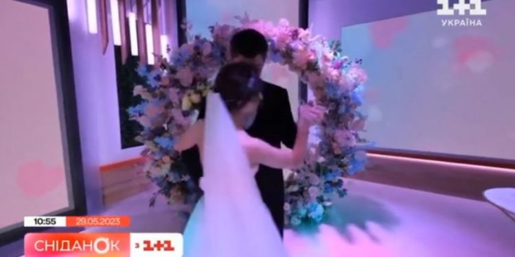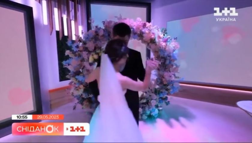 Në video shihet ushtari i njësisë së mbrojtjes ajrore Oleksandr Tereshchenko që martohet me mjeken e luftës Tetyana Snidanok, me ceremoninë që transmetohet në emisionin televiziv të mëngjesit të kanalit lokal 1+1.