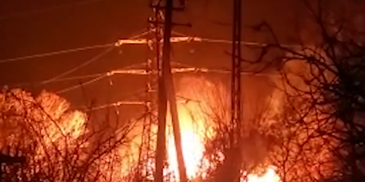 Si pasojë e një defekti elektrik në nënstacionin elektrik te pompave në Poçem, zona përreth është përfshirë nga flakët.
