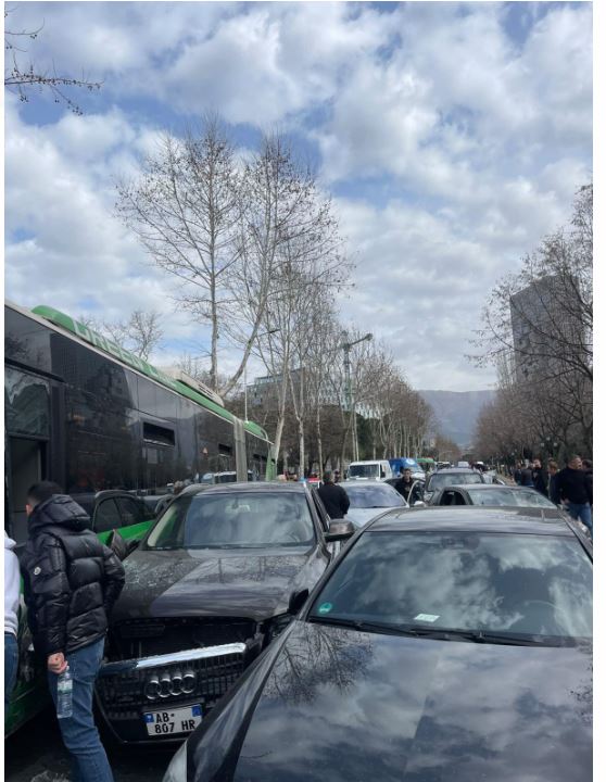 Ka dalë video e aksidentit të rëndë në Tiranë, ku një urban u përplas me disa makina.