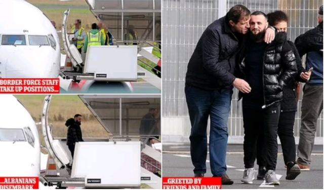 Njëmbëdhjetë shqiptarë janë deportuar nga Anglia në aeroportin e Tiranës. Të rrethuar nga roje kufitare britanike dhe zyrtarë të imigracionit, Dailymail ka publikuar dhe fotot që tregojnë shqiptarët të kthyer në vend.