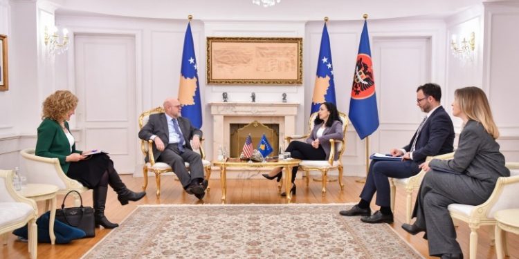 Presidentja e Republikës së Kosovës, Vjosa Osmani, ka pritur sot në takim të zyrtar ambasadorin e Shteteve të Bashkuara të Amerikës në Kosovë, Jeffrey Hovenier.