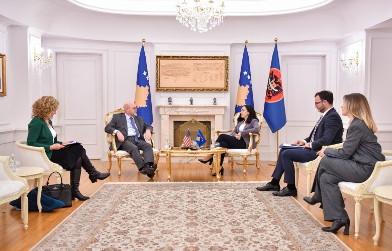 Presidentja e Republikës së Kosovës, Vjosa Osmani, ka pritur sot në takim të zyrtar ambasadorin e Shteteve të Bashkuara të Amerikës në Kosovë, Jeffrey Hovenier.