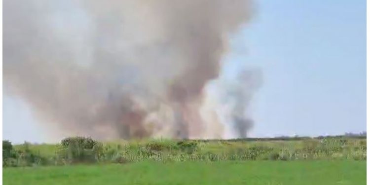 Një sipërfaqe tokë bujqësore është përfshirë nga flakët pasditen e kësaj të diele në Fier.