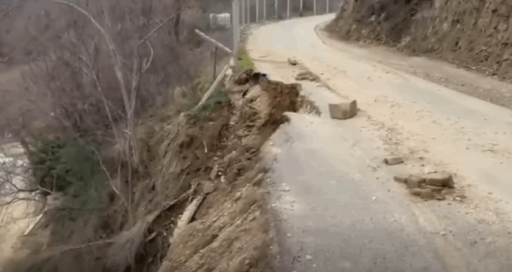 Siç shihet edhe në videon e mëposhtme të publikuar nga Aulon Kalaja, rruga në picrragë të Krujës është shembur.