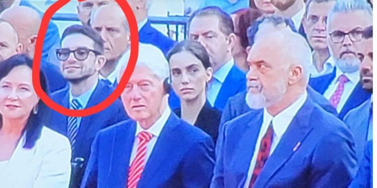 Aleks Soros është vërejtur në ceremoni, pas shpinës së Ramës dhe Klinton.