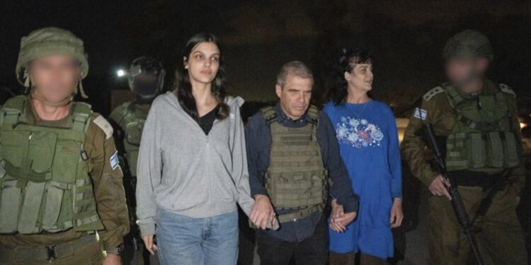 Një postim në platformën X nga Ambasada e SHBA-së në Jerusalem është publikuar fotoja e pengjeve të liruara.