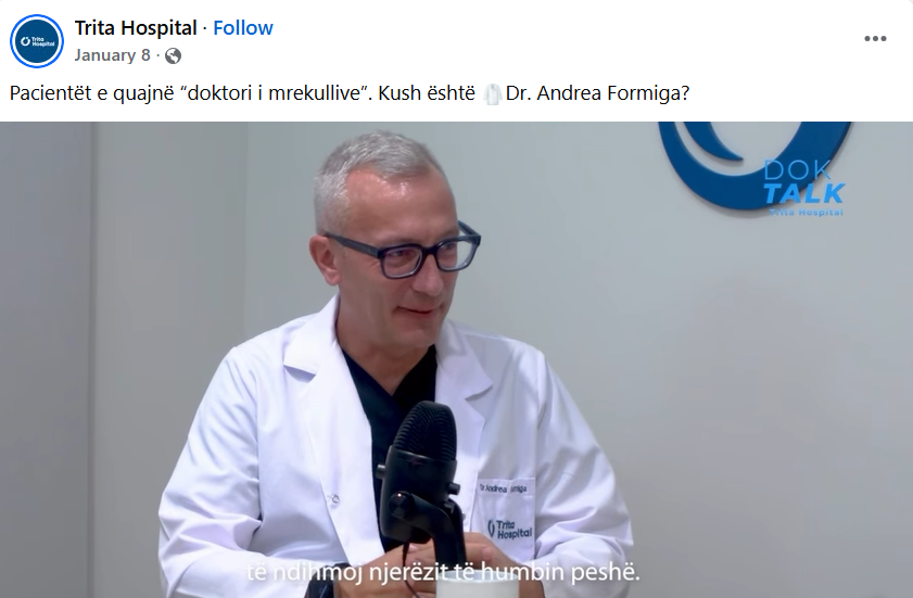 Vetë “Trita Hospital” thotë se pacientët e quanin kirurgun Andrea Formiga “doktori i mrekullive”.