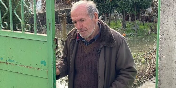 Oborri i banesës ishte i mbuluar nga uji, me një nivel që arrinte rreth 80 centimetra, por fatmirësisht përmbytja nuk kishte depërtuar brenda në shtëpi.