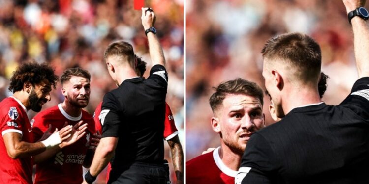 Mesfushori mori karton të kuq direkt në fitoren 3-1 të The Reds kundër Bournemouth për një faull ndaj Ryan Christie.