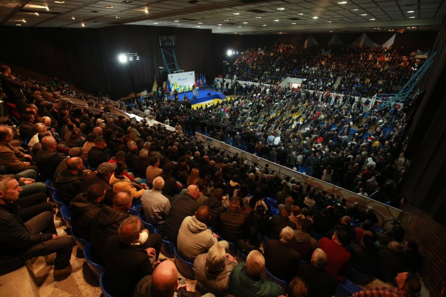 Pallati i Sportit i qytetit është mbushur plot. Ndërkohë shumë njerëz janë edhe jashtë godinës.