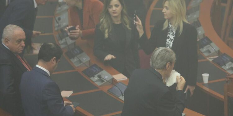 Seanca e Kuvendit është zhvilluar ‘nën pushtin’ e tymit të bardhë, pasi radhën për t’u përjashtuar nga Kuvendi e kishte deputeti i Lushnjës, Saimir Korreshi.