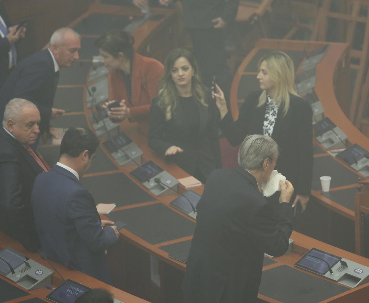 Ky i fundit ndezi tre tymuese, të cilat mbuluan me një re të madhe sallën e Kuvendit.
