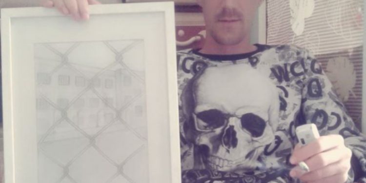 Në foto, Shahini shihet se mban në dorë një kornizë, e cila ka brenda një pikturë nga burgu ku ka vuajtur dënimin, pasi ka qënë i dënuar më parë.