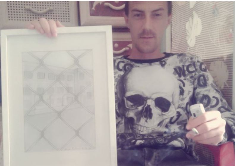Në foto, Shahini shihet se mban në dorë një kornizë, e cila ka brenda një pikturë nga burgu ku ka vuajtur dënimin, pasi ka qënë i dënuar më parë.