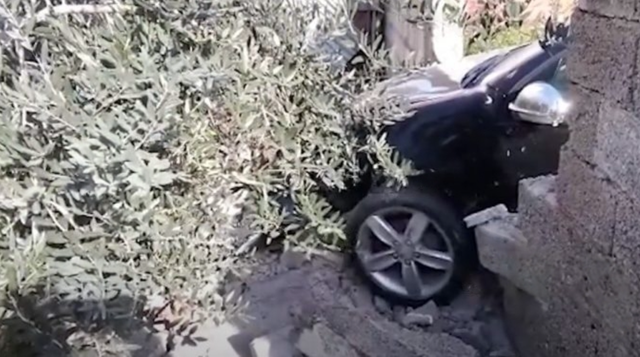 Automjeti tip “Golf” përfundoi në oborr banese, pas një përplasje me një automjet tjetër.