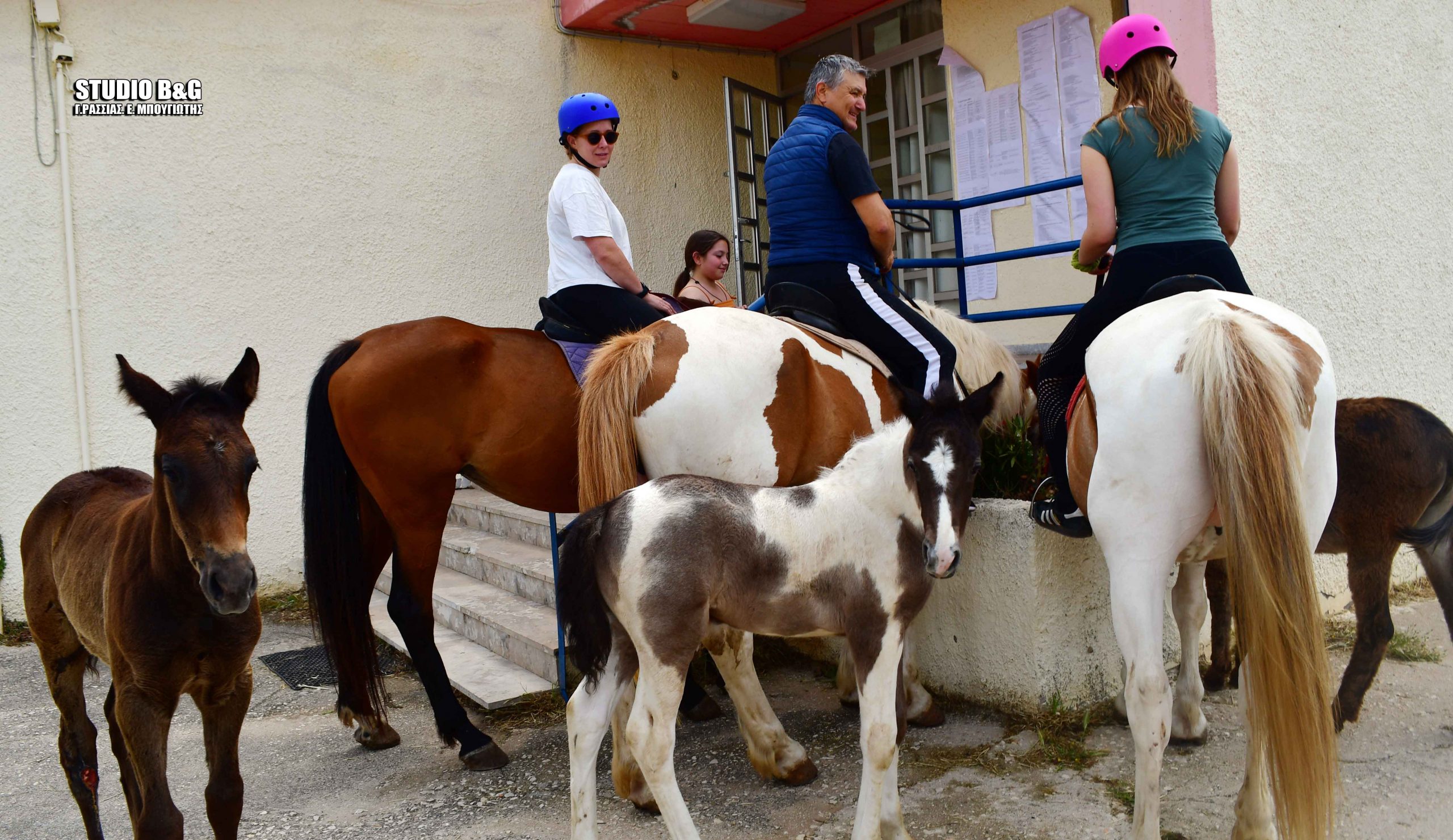 Me kalë dhe i shoqëruar nga një gomar i vogël, një fermer 50-vjeçar u nis drejt qendrës së votimit në shkollën e mesme speciale Argolida, në Nafplio, për të votuar në zgjedhje .
