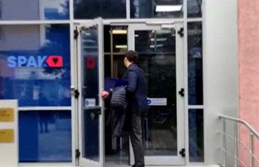 Siç shihet në këtë foto, Shkëlzen Berisha mbante në duar dhe një dosje dhe ka hyrë në derën e SPAK, i vetëm, i pashoqëruar nga ndonjë avokat.