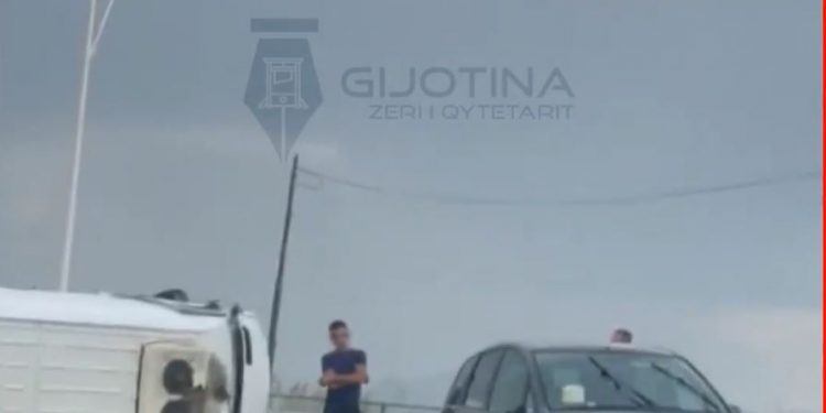 Një mjet furgon me targa AA 310 BV, ka rrëshqitur në rrugë, duke u përmbysur.