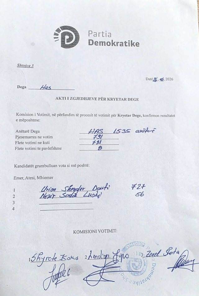 Procesi i numërimit të votave në degën e Partisë Demokratike në Kukës përfundoi me fitoren e Rrahman Demajt, i cili mori 642 vota, ndërsa rivali i tij Sabah Cenaj siguroi 273 vota.