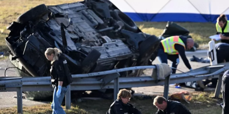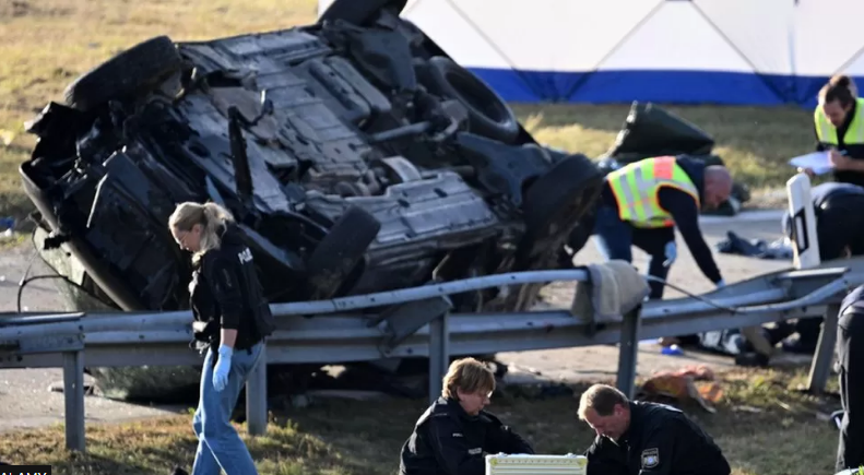 Por shoferi i mjetit me targa të Austrisë kishte shtuar shpejtësinë në rreth 180km/orë para se të humbte kontrollin e të rrokullisej disa herë në një kryqëzim të autostradës A94 mes kufirit austriak dhe Munich. Drejtuesi i mjetit është arrestuar.