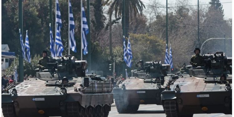 Parada ushtarake e 25 marsit po zhvillohet në qendër të Athinës, e cila nisi me 21 të shtëna me top në Lycabettus.