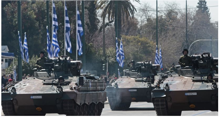 Parada ushtarake e 25 marsit po zhvillohet në qendër të Athinës, e cila nisi me 21 të shtëna me top në Lycabettus.