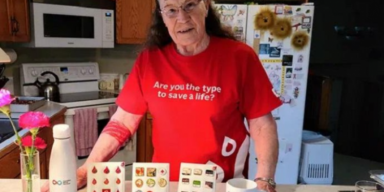 Një grua 80 vjeçare nga Alberta e cila ka dhuruar gjak rregullisht për afro 6 dekada, ka marrë certifikatën e Rekordit Botëror Guiness për më së shumti gjak të dhuruar nga ndonjë femër.