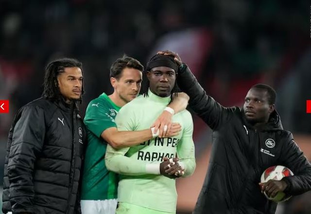 Menjëherë pas vërshëllimës përfundimtare të arbitrit, portieri i St. Gallen, Laurence Ati Zigi (26 vjeç) qëndron në qendër të fushës. Ai derdh lot të hidhur, ndaj ngushëllohet dhe përqafohet nga shokët e skuadrës.