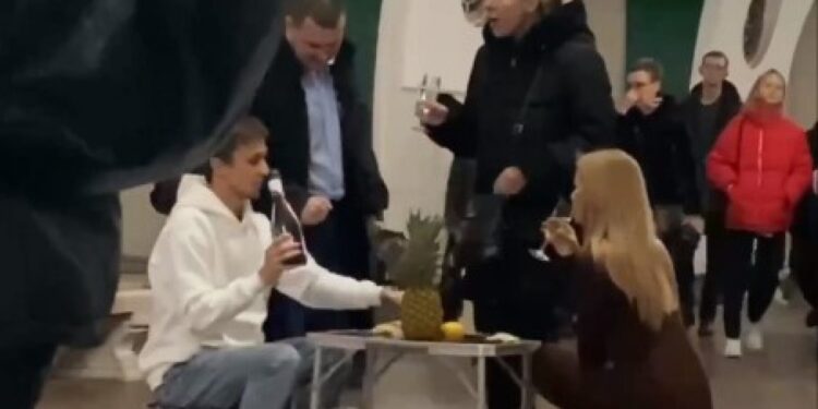 Propozimi i një burri rus i identifikuar si Evgeny, për të dashurën e tij, në një stacion metroje në Moskë, u shkatërrua pasi u arrestuan dhe u akuzuan për “huliganizëm të vogël”.